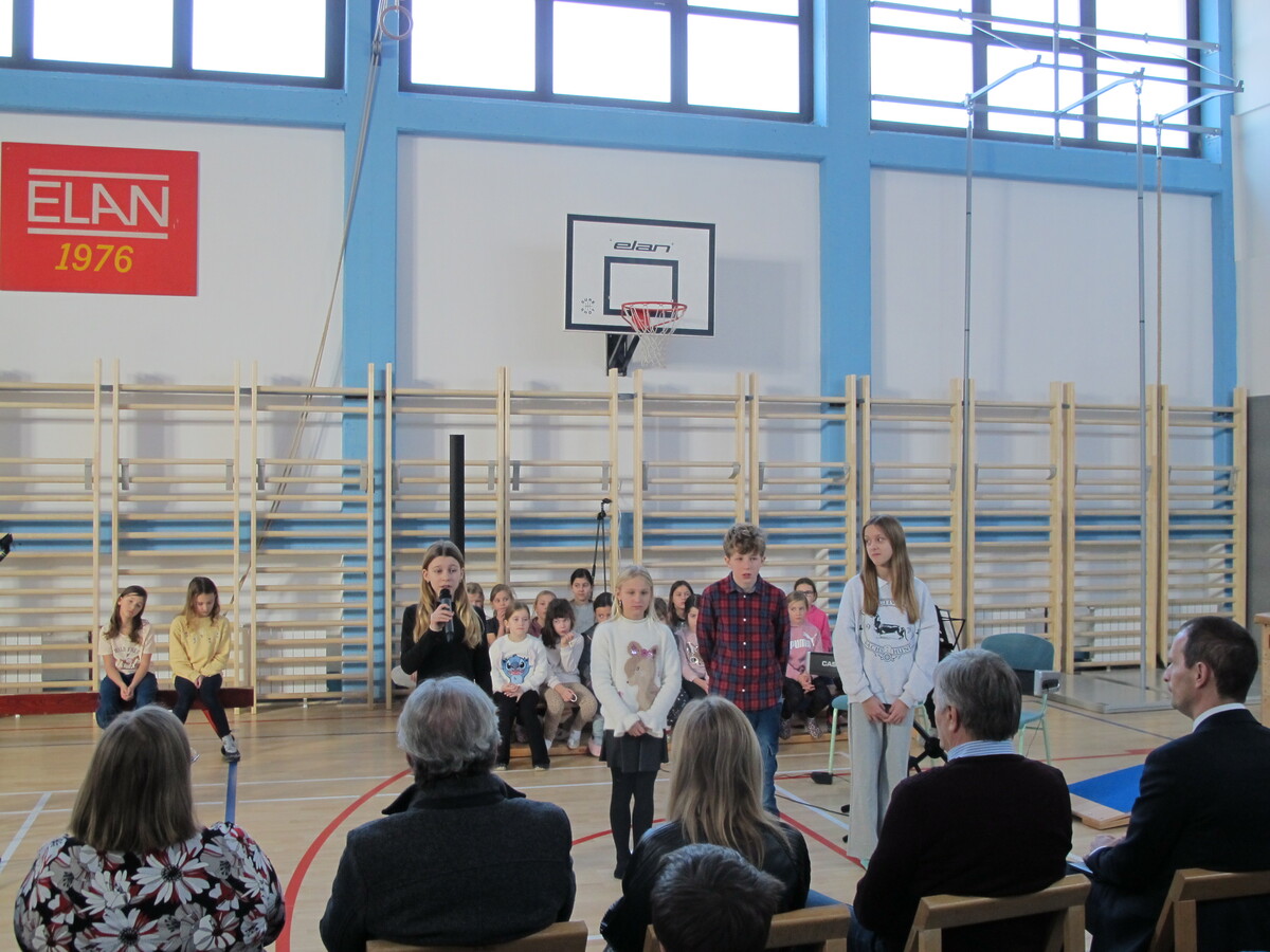 Današnjo prireditev ob zaključku obnove telovadnice so popestrili glasbeni nastopi učenk in učencev, otroški pevski zbor POŠ Begunje ter recitali učenk in učencev. Njihove nastope sta si v družbi ravnateljice Emilije Kavčič, vodje podružnične šole Jane Ulčar in župana Cirila Globočnika ogledala tudi poslanka Državnega zbora RS mag. Alma Intihar in generalni sekretar na Ministrstvu za gospodarstvo, turizem in šport dr. Mitja Blaganje.