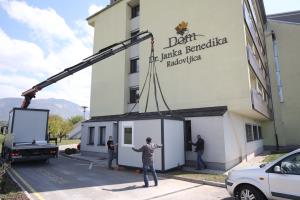 Občina Radovljica je v prizadevanjih za preprečitev oziroma obvladovanje morebitne okužbe s korona virusom poskrbela za dva zabojnika, ki ju danes postavljajo pred domom dr. Janka Benedika v Radovljici. V enem od turističnih objektov na območju občine pa so rezervirane tudi začasne nastanitvene zmogljivosti, ki bi ob primeru okužbe v domu omogočile samoizolacijo zaposlenih.