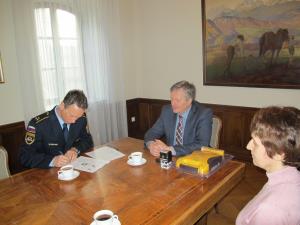 K sodelovanju v projektu Oživimo srce, namenjenemu povečanju možnosti preživetja ob srčnem zastoju, je pristopila tudi Policijska postaja Radovljica. Komandir Matej Brajnik je danes podpisal aneks k dogovoru o aktiviranju enot za zaščito, reševanje in pomoč na območju občine Radovljica z namenom reševanja življenj z oživljanjem, uporabo polavtomatskega zunanjega defibrilatorja (AED) in z ukrepi za ohranjanje osnovnih življenjskih funkcij, župan Ciril Globočnik pa mu je predal avtomatski defibrilator in drugo opremo ter se zahvalil za vključitev v projekt.
