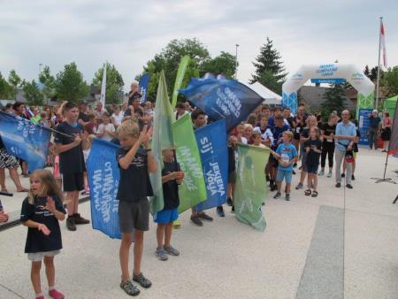 Po trasi po središču Radovljice so mladi člani Plavalnega kluba Radovljica, športnega odseka Planinskega društva Radovljica, Taekwon-do kluba Radovljica, tekaške skupine Tečemo z nasmehom, Atletskega kluba Radovljica, društva Ejga, društva HKMK Bled in Centra za usposabljanje in varstvo Matevža Langusa baklo ponesli skozi cilj na Vurnikovem trgu in jo predali radovljiški olimpijki, daljinski plavalki Špeli Perše ter županu Cirilu Globočniku.