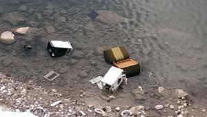 Čeprav prostovoljci v čistilnih akcijah opažajo, da je divjih odlagališč vse manj, pa se primeri nevestnega odlaganja odpadkov na žalost še pojavljajo. Na fotografiji so odpadki, nedavno odvrženi z brežine Save ob cesti Lancovo – Bodešče. (Foto: Gregor Remec)