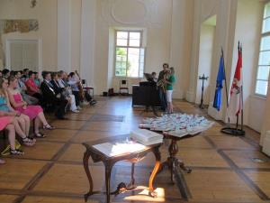 V tem šolskem letu je bilo na osnovnih šolah A. T. Linharta Radovljica, F. S. Finžgarja Lesce, Staneta Žagarja Lipnica in Antona Janše Radovljica 144 devetošolcev. V vseh devetih razredih je odličen uspeh oziroma povprečno oceno najmanj 4,51 doseglo 27 učencev. Župan jim je na sprejemu v Baročni dvorani Radovljiške graščine čestital, izročil priznanja in knjižna darila. Podelitev je spremljal odličen glasbeni program učencev Glasbene šole Radovljica.