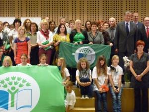 Vrtec Radovljica je včeraj na slovesnosti na Brdu pri Kranju prejel zeleno zastavo. Predsednik republike dr. Danilo Türk je zelene zastave izročil novim ekošolam in vrtcem, ki so v letu 2011/12 uspešno zaključili vseh sedem korakov, kot jih določa metodologija ekošole.
