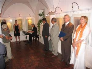 Razstavo je odprl veleposlanik Republike Češke Petr Voznica, ki je o življenju pomembnega češkega umetnika navedel nekaj manj znanih zanimivosti, predstavili pa so jo župan Občine Ivančice Vojtech Adam, direktorica Muzejev radovljiške občine Verena Štekar Vidic ter direktor Kulturnega in informativnega centra Ivančice Aleš Tureček. O sodelovanju med občinama je spregovoril župan Janko S. Stušek. Razstava predstavlja skice, plakate in druga dela Alfonsa Muche. Mesto Ivančice je predstavljeno s fotografijami in deli sodobnega umetnika Bohumila Zimmermanna. V Galeriji Šivčeva hiša je razstava na ogled v mesecu avgustu.