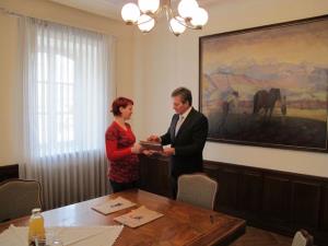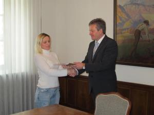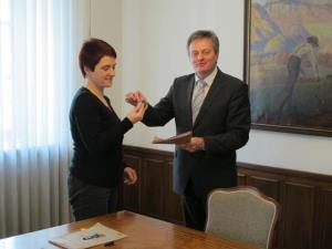 Župan Ciril Globočnik je pred božično - novoletnimi prazniki izročil ključe štirim novim najemnikom občinskih neprofitnih stanovanj, dveh v Radovljici in po enega v Kamni Gorici in na Srednji Dobravi.