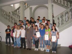 Župan Ciril Globočnik je danes sprejel odlične učenke in učence, ki v radovljiški občini zaključujejo osnovno šolanje. V tem šolskem letu je na osnovnih šolah A. T. Linharta Radovljica, F. S. Finžgarja Lesce, Staneta Žagarja Lipnica in Antona Janše Radovljica 150 devetošolcev. Gre za zadnjo generacijo, ki je osnovno šolo začela še v osemletki. Med njimi jih je 28 doseglo odličen uspeh do vključno 6. razreda, v 7., 8. in 9. razredu pa povprečno oceno najmanj 4,51.