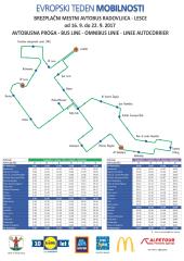 Že objavljeni vozni red pa je dopolnjen še s postajališčem pri Mercatorjevem in Merkurjevem trgovskem centru v Rožni dolini v Lescah. Dopolnjeni vozni red je v prilogi.