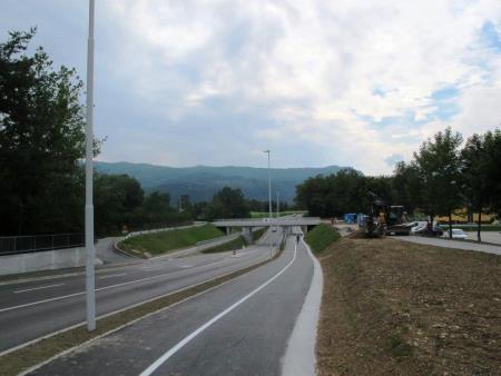 Občina projekt izvaja v dveh fazah. Prvi sklop zajema gradnjo kolesarske steze in hodnika za pešce ob regionalni cesti med krožiščema z Boštjanovo ulico in Alpsko cesto z delno rekonstrukcijo regionalne ceste. Za ločeno vodenje pešcev in kolesarjev sta skozi železniški nadvoz speljana nova preboja oz. manjša predora ob cestnem podvozu pod progo. Vrednost gradbenih del, ki bodo končana v septembru, znaša približno 897 tisoč evrov. Za rekonstrukcijo regionalne ceste, ki vključuje tudi ureditev cestnih priključkov, Ministrstvo za infrastrukturo prispeva dodatnih 300 tisoč evrov, izvaja pa jo Direkcija RS za infrastrukturo. Občina je na tem cestnem odseku sočasno uredila cestno razsvetljavo, prometno signalizacijo, vodovod in kanalizacijo.